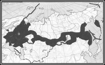 Рис. 3. Черным помечены зоны ускоренного вымирания нашей страны.