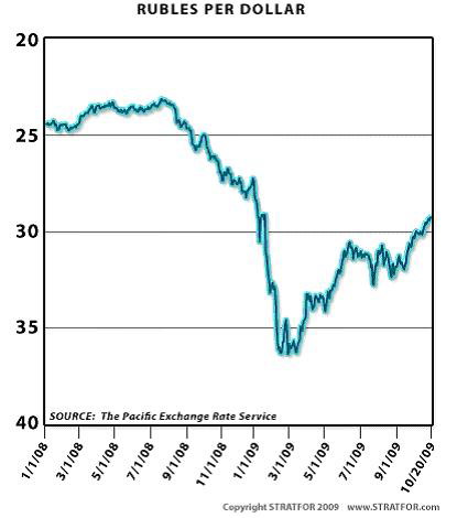 Однако есть всё больше признаков того, что доверие инвесторов к российской экономике возвращается. Во-первых, курс рубля восстановился и повысился примерно на 19% по отношению к американскому доллару с низшей точки в 36 рублей за доллар в феврале/марте до сегодняшнего курса в 29,28 рублей. Во-вторых, резкий отток капиталов, который был типичен для третьего и четвёртого кварталов 2008 года, значительно уменьшился. Чистая утечка капитала из России уменьшилась с 55 миллиардов долларов в октябре прошлого года до лишь 6 миллиардов долларов в этом сентябре, а в июне даже недолго была положительной. В-третьих, восстановился интерес к российскому рынку ценных бумаг, особенно в связи с тем, что инвесторы уходят от низкодоходных американских государственных долговых обязательств и ищут более рискованные активы, которые приносят больше прибыли. В ситуации с более высокими ценами на нефть (в настоящее время цена на нефть достигла 78 долларов за баррель, что более чем в два раза выше по сравнению с низшими точками в феврале) и бóльшим стремлением к риску инвесторы понемногу возвращаются.