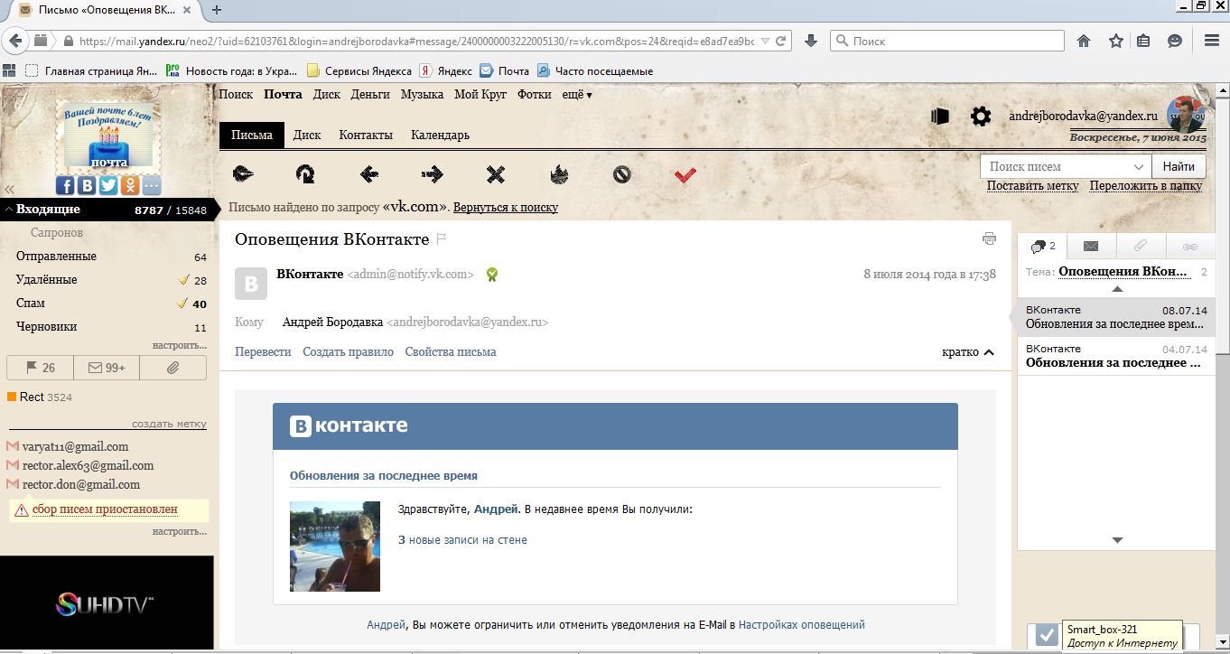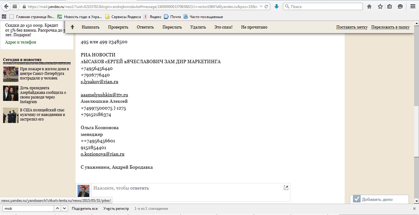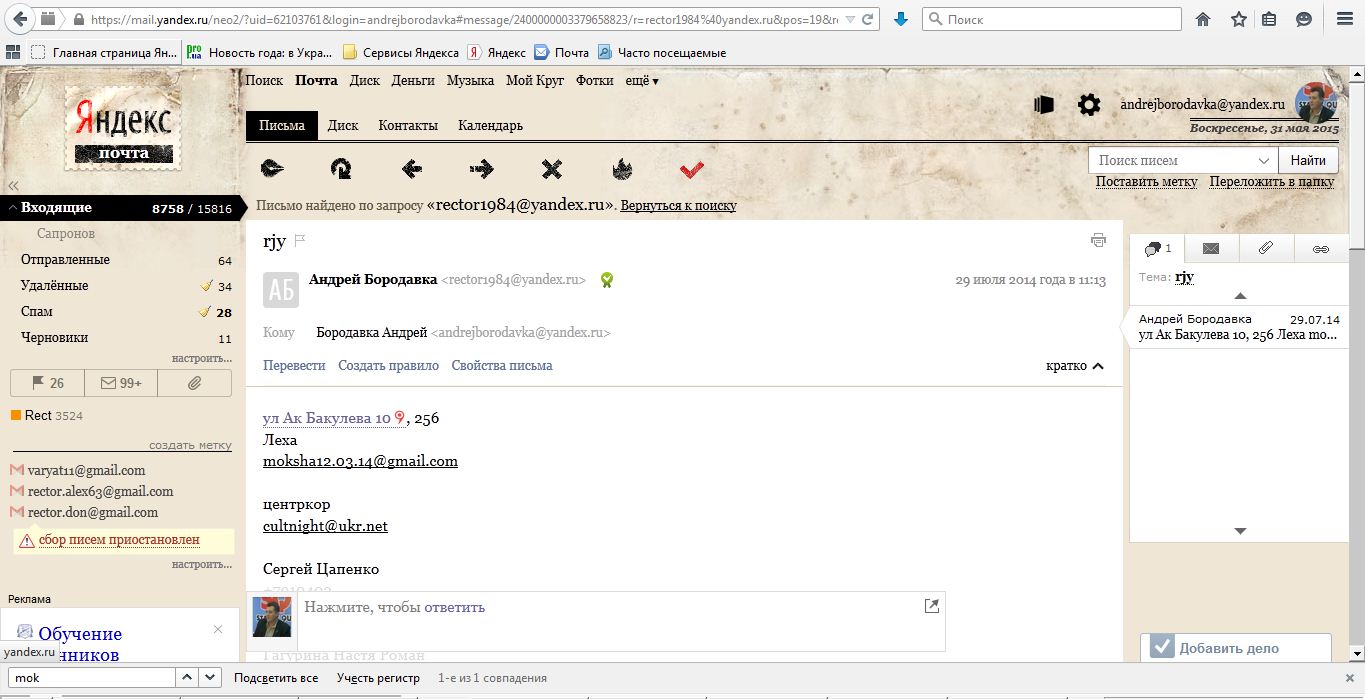 Итак, друзья, я теперь ТОЧНО знаю ФИО, адрес проживания в г. Мытищи и место работы злоумышленника профессионального IT специалиста компании Яндекс, осуществившего взлом моей электронной почты andrejborodavka@yandex.ru 30.05.2015г. в 03ч.55мин.