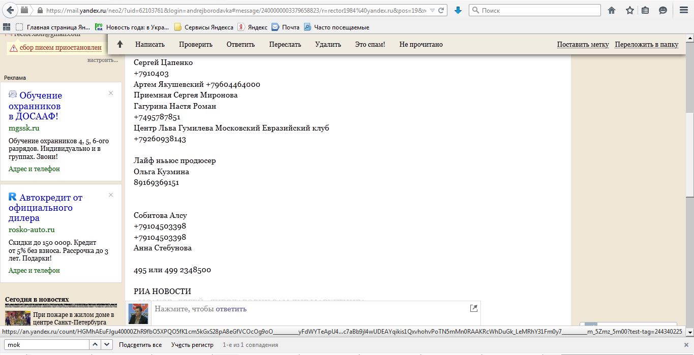 Обнаружить этот тайный канал связи с нужными людьми удалось благодаря взлому все той же общеизвестной почты «героя», на которую он зарегистрирован.