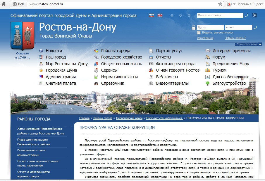 Скриншот с официального сайта администрации г. Ростова-на-Дону.