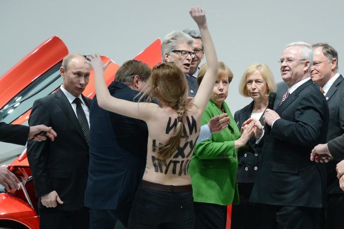 На груди 19-летней феминистки было написано: «Я бог». Она кричала, что верит в равенство всех людей. По данным журнала, акцию, скорее всего, провела Жозефина Витт. Она была одной из пяти активисток Femen, которые разделись перед российским президентом Владимиром Путиным в Ганновере в апреле 2013 года.