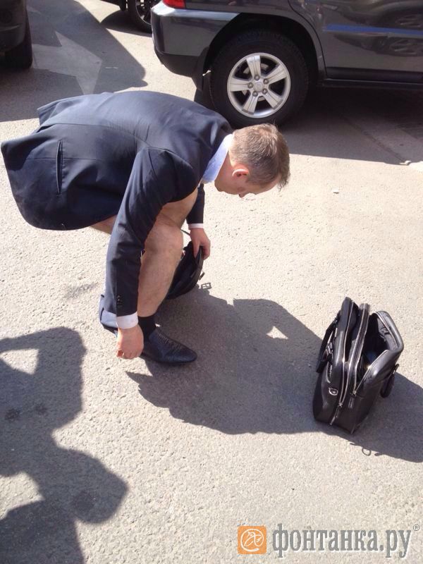 Инцидент произошел днем 8 июля: возле дома 9/13 по Большой Морской прохожие заметили мужчину с явными признаками алкогольного опьянения в представительном костюме и без штанов. На место происшествия была вызвана «скорая помощь». В 16.30 мужчина был доставлен в НИИ им. Джанелидзе». Полуобнаженный чиновник оказался руководителем аппарата вице-губернатора Мокрецова Валентином Верещака. По данным издания, государственный советник РФ 1 класса успел прогуляться по Большой Морской – от перекрестка с Кирпичным переулком до самого Невского проспекта. Заснять непривычно одетого мужчину на фото удалось одной из очевидиц прогулки. В больнице чиновнику уточнили диагноз: термический ожог верхних конечностей, сотрясение головного мозга, гематомы на левой скуле».