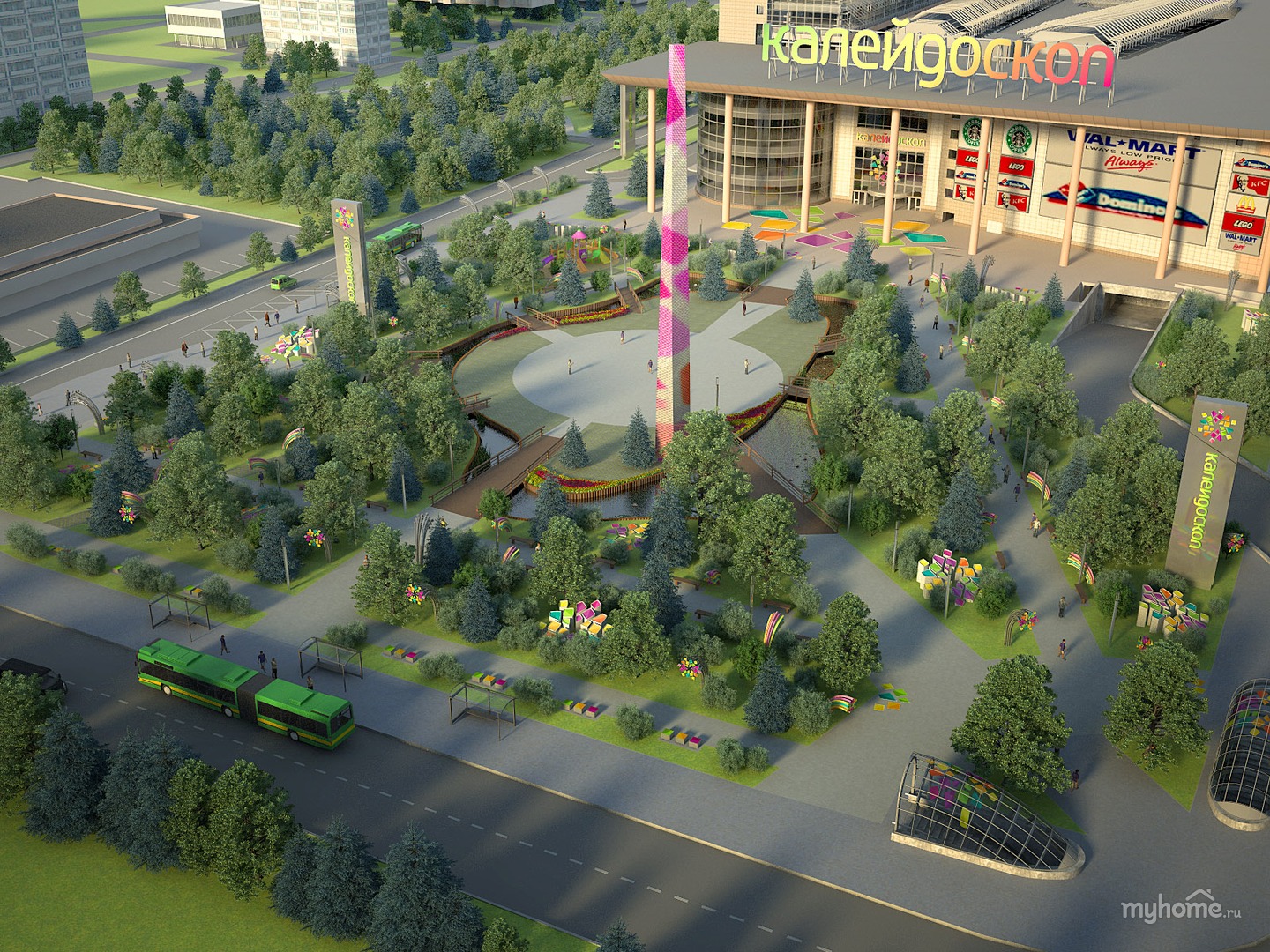 ТЦ "Калейдоскоп" на Сходненской отличается тем, что вокруг него территория представляет собой цельный, эстетически и функционально обоснованный комплекс! Реально площадь у метро "Сходненская" на сегодня, вероятно, самая красивая на окраинах Москвы.