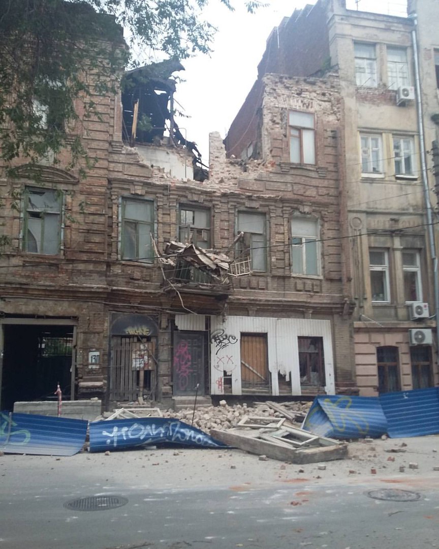 Это к вопросу о сохранении исторического облика города... Здания-то старинные, но находились в таком запущенном состоянии, что рухнули от дождя.