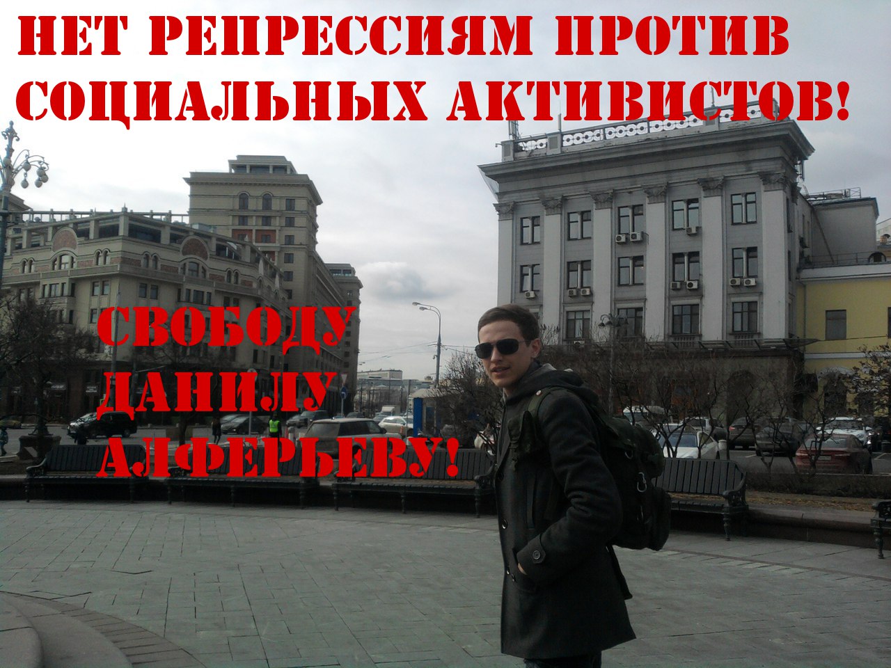 22 августа в 12-м часу дня в Москве, на съёмной квартире на Варшавском шоссе был задержан левый активист Данила Алферьев. Задержание проводилось людьми в гражданской одежде, в квартире был произведён обыск, все вещи перевернуты, никаких постановлений на момент задержания предъявлено не было.
