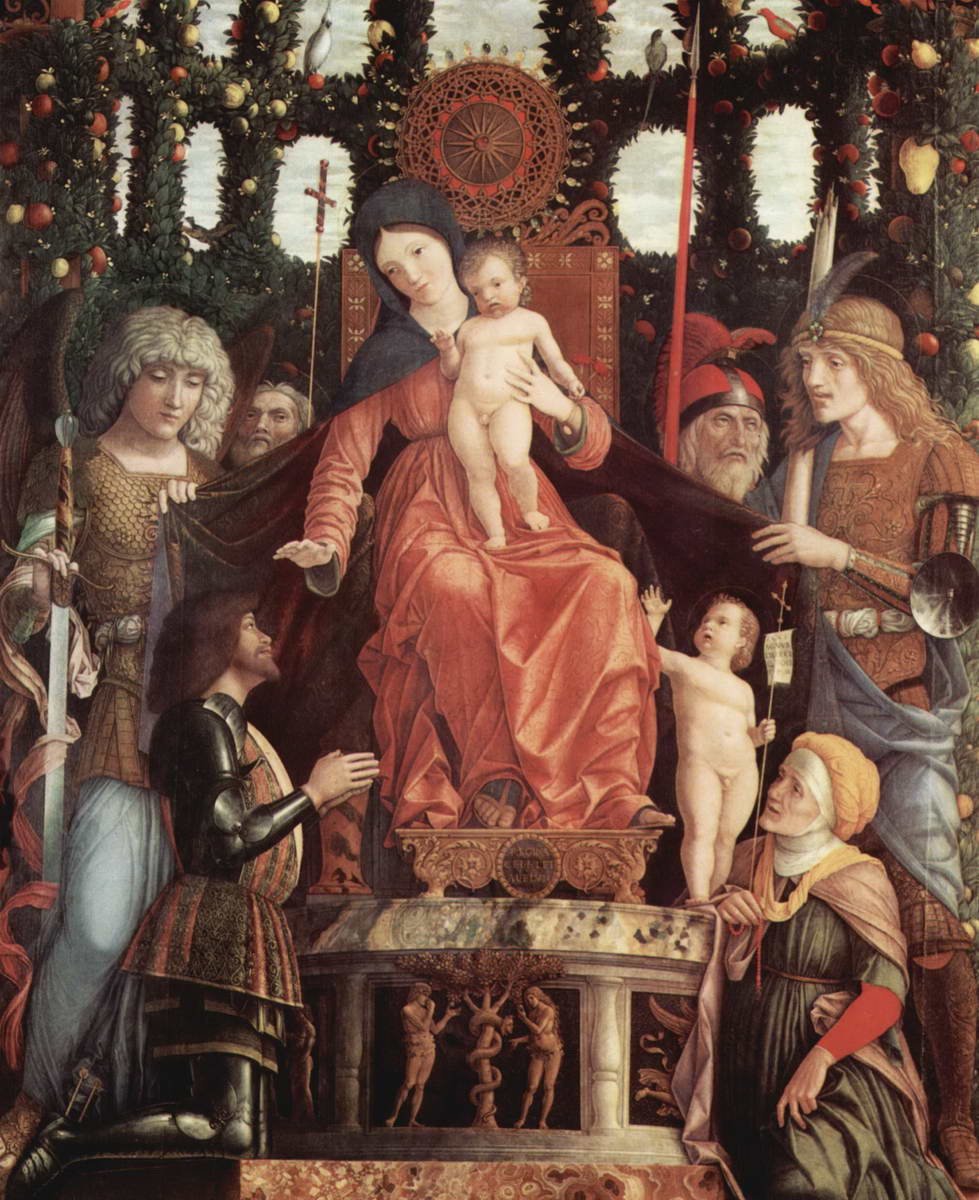 Вот, например, Мадонна делла Витториа, благословляющая герцога Франческо Гонзага. Для определенного уровня развития в этом и правда ничего особого не было. Но потом, где-то со времен Лютера, над этим уже стали посмеиваться.