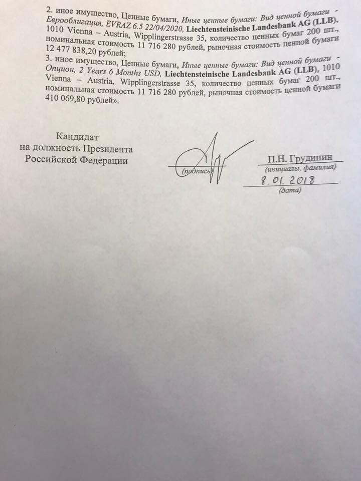 Так что нет никаких оснований подвергать сомнению данные, предоставленные в ЦИК лично самим П.Н.Грудининым: