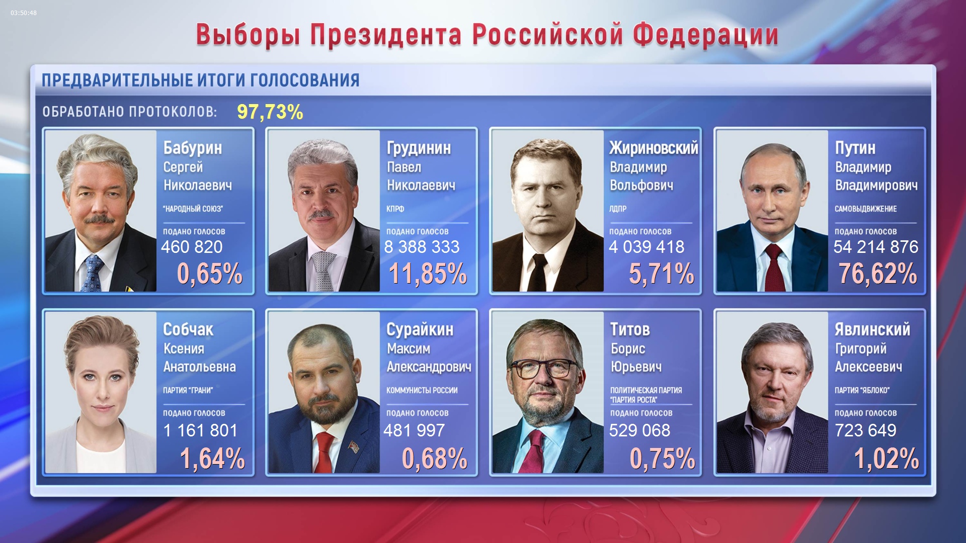 Но тем не менее, в целом результат ожидаемый, и весь вопрос состоял в том, наберет Путин абсолютное большинство, что позволит ему говорить об абсолютном доверии граждан и сделать себя несменяемым не только по факту, но и по букве закона.