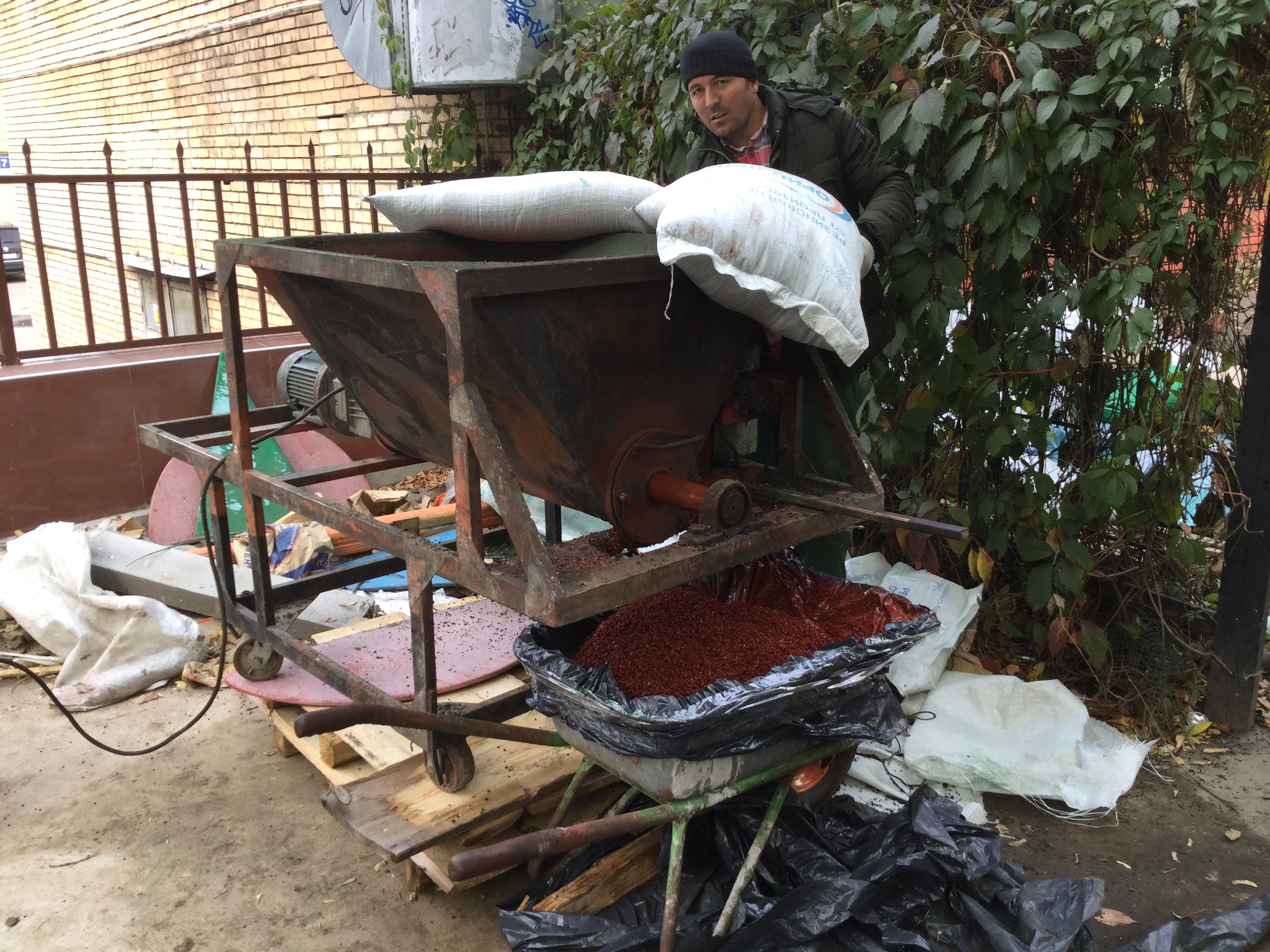 - Мы зафиксировали на фотографиях весь процесс производства резинового покрытия, - продолжает Гребенник, - от измельченной вместе с кордом покрышки до подкрашивания неизвестными красителями и до нанесения на асфальт. Видите, все очень просто, никаких «высоких технологий», да и «технологи» весьма характерные, навряд ли сильно квалифицированные.