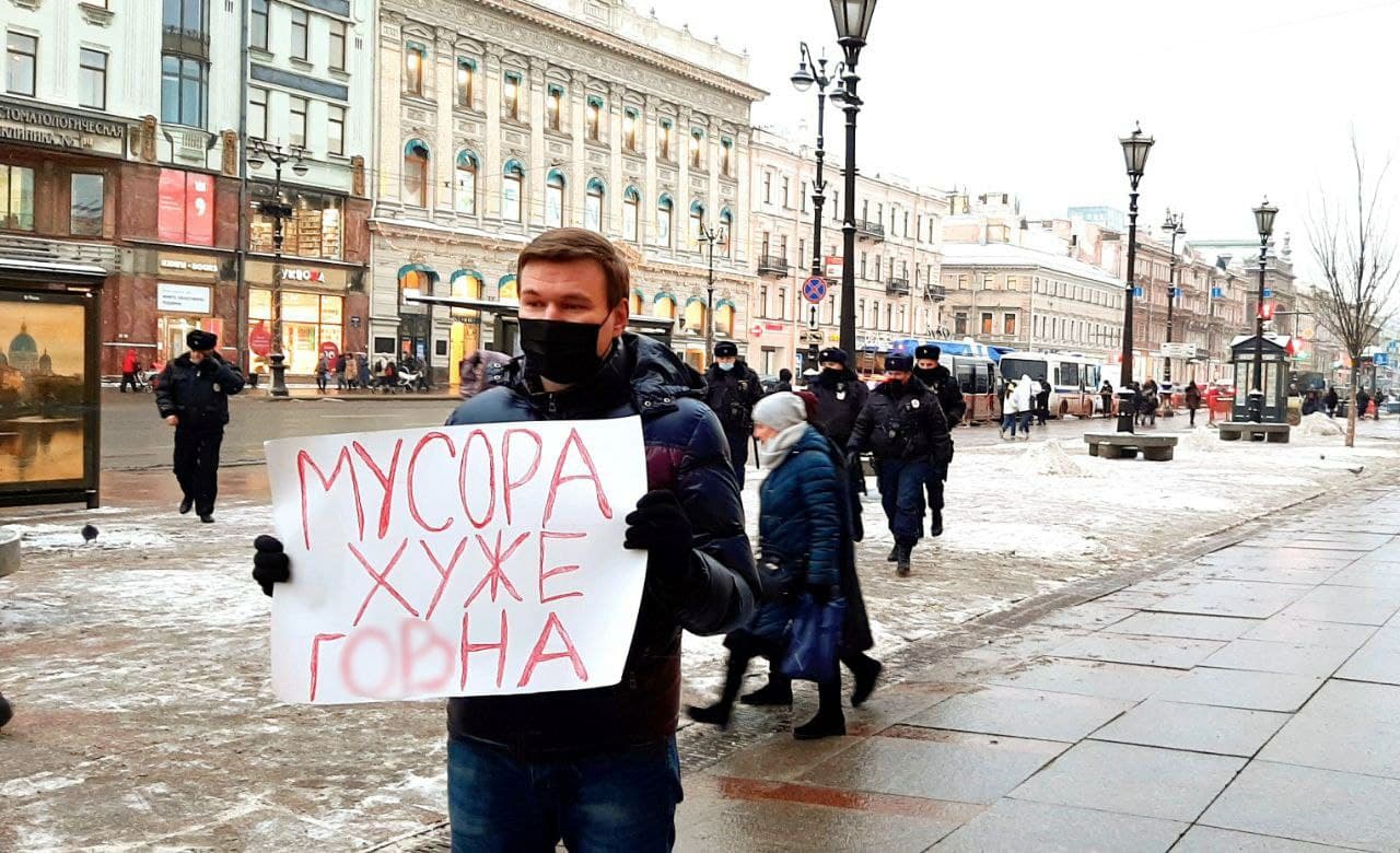 В Петербурге двое полицейских подали иск о возмещении морального вреда к бывшему участнику "АгитРоссии" Павлу Иванкину. Иски сотрудников связаны с пикетом активиста, по следам которого против него возбудили уголовное дело об оскорблении силовиков (ст. 319 УК). Фраза "Мусора хуже говна", которую они увидели на плакате 19 января, причинила им "моральный вред, выразившийся в нравственных страданиях, психическом переживании, возникшем в связи с нанесенным публичным оскорблением, не имеющим под собой никаких оснований".