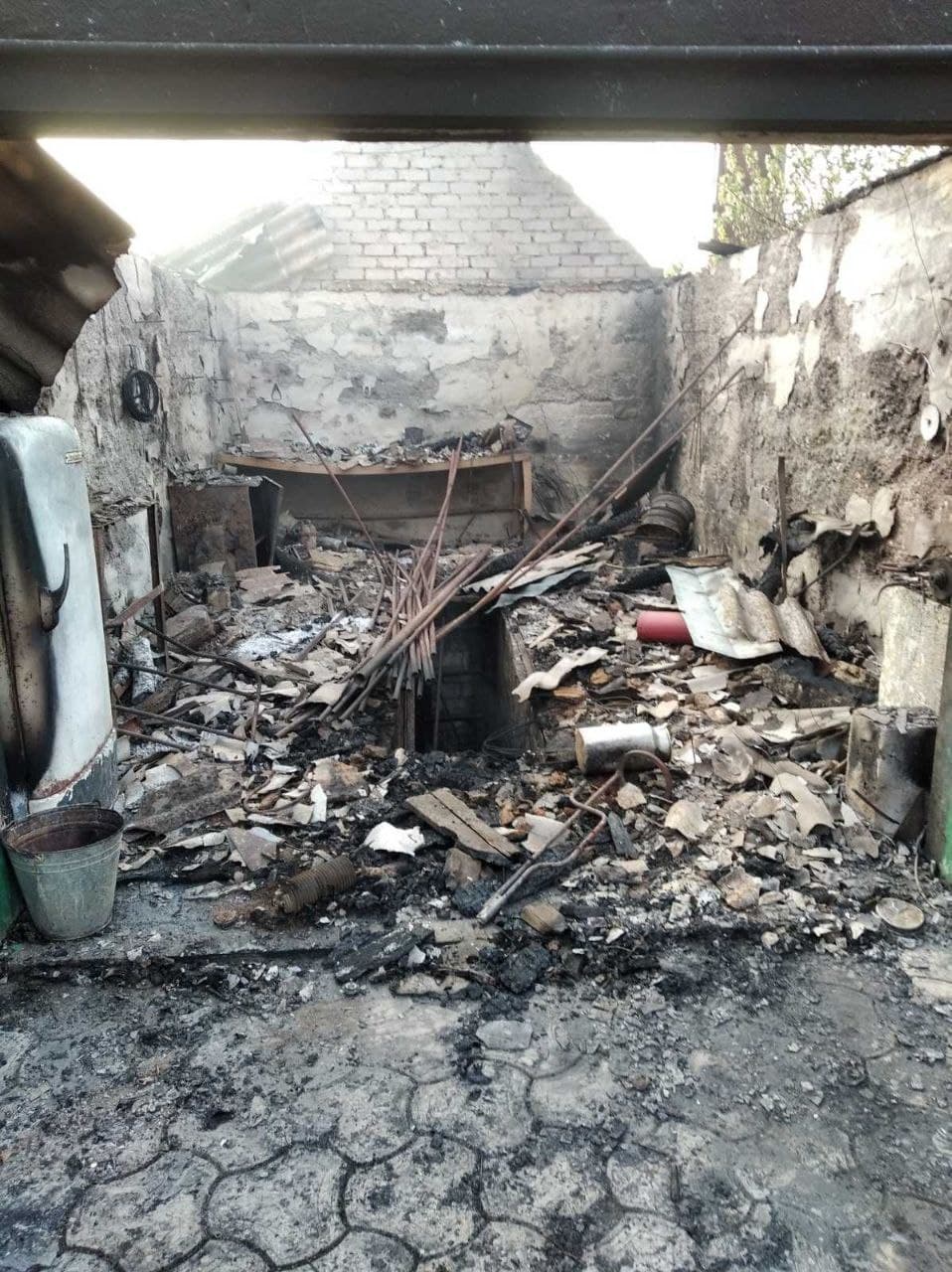 Это - то, что осталось от дома Любы Антоненко, сообщает финская журналистка Оксана Челышева. Люба жила в этом доме по улице Ахматовой. Вчера село обстреляли зажигательными снарядами. Дом Любы тушить не дали, продолжая обстрел. Она под обстрелом, несмотря на опасность, вывела из двора машину. Знаете, почему? Люба - социальный работник. Она ухаживает за стариками, ей машина нужна. Сегодня под обстрелом пенсию повезет…