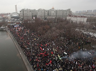 Главное опасение, что Болотная не очень удачное место с точки зрения географии: хоть в центре, но на отшибе, хоть большая, но далеко от всего - оказалось не слишком оправданным. Как я и говорил вчера, если соберется 30 тысяч человек, то все равно услышат. Собралось больше 100 тысяч... На площади люди не помещались, стояли на мостах и на набережной напротив, вплотную, на примыкающих улицах - везде. Море людей. Вся Москва.