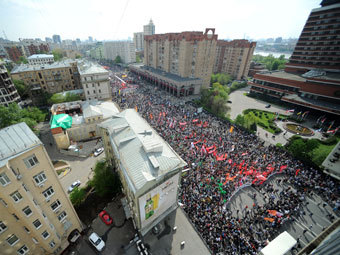 В Москве проходит "Марш миллионов". По оценкам корреспондента ИТАР-ТАСС, в шествии участвуют около 15 тысяч человек — в три раза больше заявленного числа в 5 тысяч участников. В то же время, по данным Главного управления МВД по Москве, число участников шествия около 8 тысячи человек. Ранее наш кореспондент сообщал о 70 тысячах, но это, видимо, от духоподъемного настроения. Оценить явку можно по панорамному фото.