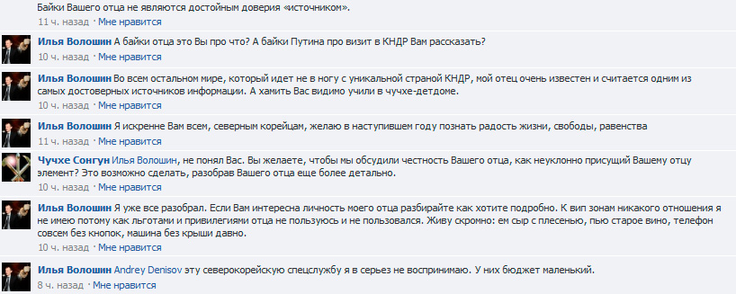 На страницах фэйсбука о КНДР «Juche Songun» произошла забавная дискуссия между модератором и посетителем с ником Ra Ha Cho. Блоггер