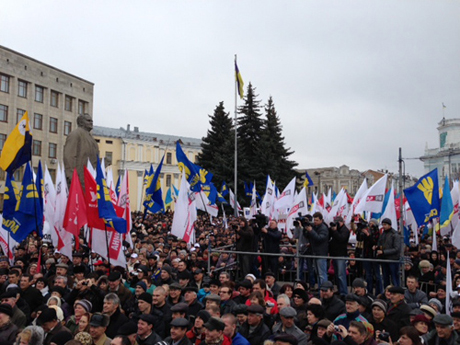 Митинг формально проводят "Свобода", "Батькивщина" и "Удар", но очень легко понять, кто здесь главный. Таким образом на Украине вырисовывается не слишком вдохновляющая перспектива - "бандюки" против "нациков".