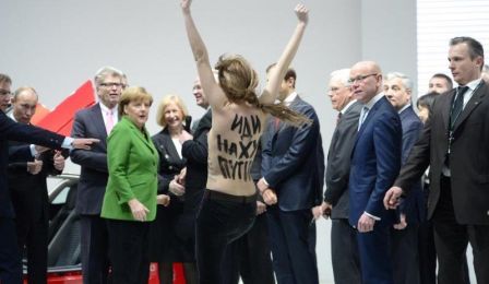 Активистки украинского движения Femen разделись до пояса перед Владимиром Путиным и Ангелой Меркель, когда те осматривали стенд Volkswagen на ярмарке в Ганновере. Об этом сообщает «Интерфакс».