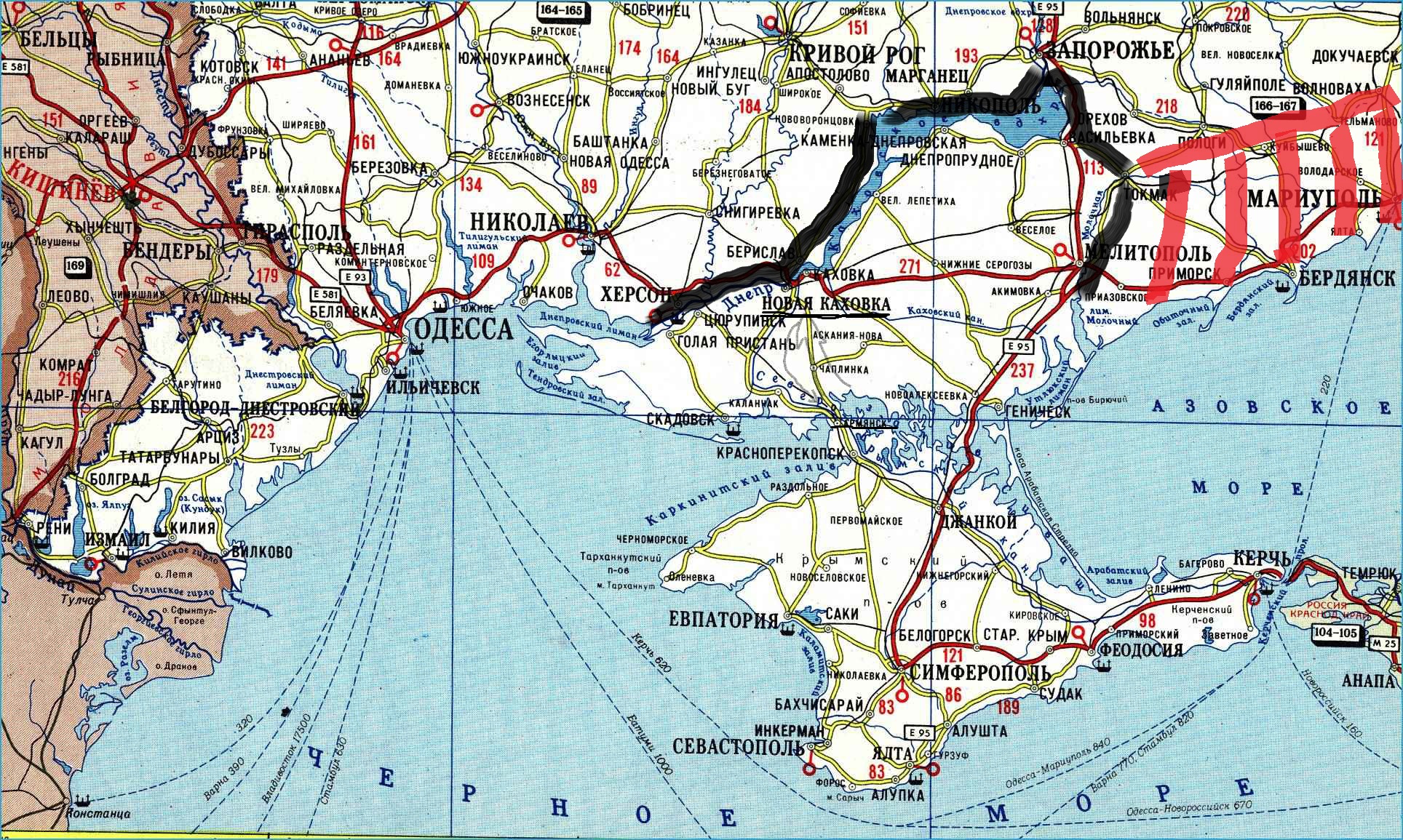 Как мне поведал один из планировщиков операции, в феврале, когда на Украине царили полные бардак и замешательство, и когда в Крыму началась спецоперация по его отторжению от бывшей УССР, вооруженные отряды наших пересекли перешеек и вышли к Новой Каховке (см. карту). Тем самым они брали под контроль водоснабжение полуострова. Украинские части тогда стрелять не хотели. Но по команде из Москвы отряды оттянулись назад, к Армянску на перешейке. К немалому удивлению украинских военных. Отчего сейчас Крым получил огромную проблему с водоснабжением.