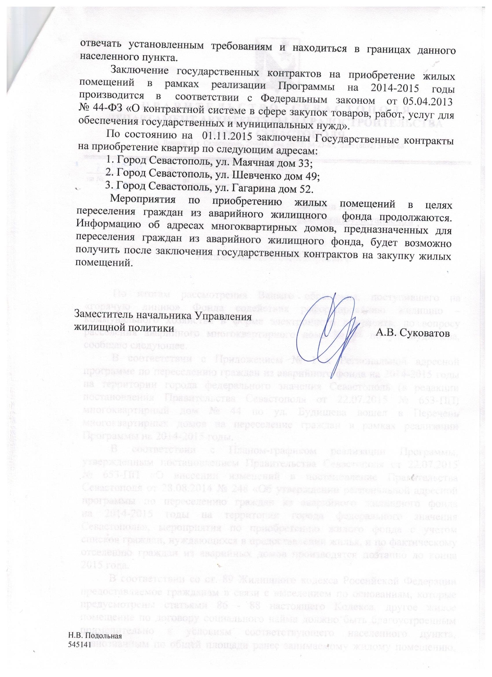 И вот теперь самое интересное. В ответе господина Суковатого указаны три адреса, по которым уже заключены государственные контракты на приобретение квартир. Что, можно вселяться?