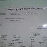 Этот концентрат переделывается на заводе в металлы платиновой группы. В РФ это – единственный завод в Красноярске. По традиционной схеме для получения металлов платиновой группы нужны 86 химических операций. Все это длится по шесть месяцев. В конечном итоге, металлы разделяют и получают бруски платины, палладия и так далее.