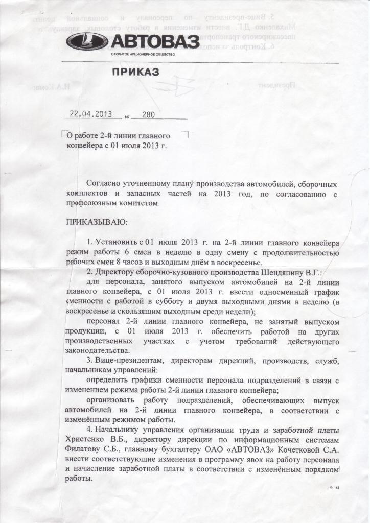 А к 1-му июля готовят новый удар по трудовому народу, это приказ № 280 от 22.04.2013. Это дальнейшая политика по развалу крупнейшего в мире предприятия, которому даже в 90-ых годах удавалось оставаться прибыльным.