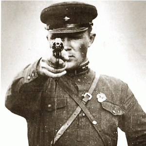 Статью украшает очень хороший снимок в левом углу. На снимки молодой человек в военной форме с пистолетом, прицеливающийся, очевидно, во врага народа. Он не промахнется! В будущем такие воины приведут в исполнение приговоры народных судов над теми, кто предал Родину и разграбил страну.