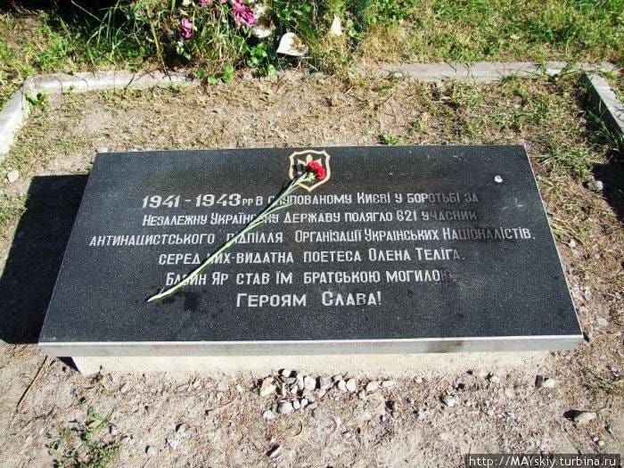 Не расстреливали членов ОУН, в т.ч. и Олэну Телигу, в Бабьем Яру. Нет ни одного доказательства, что здесь были расстреляны украинские националисты. Крест, который там стоит, — сугубо символический, его можно было бы поставить в любом другом месте, а не в месте, где однопартийцы расстрелянных казнили евреев и других советских граждан.